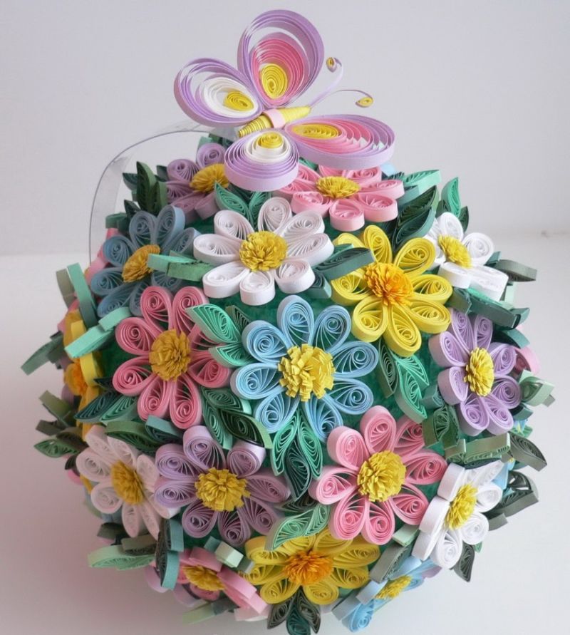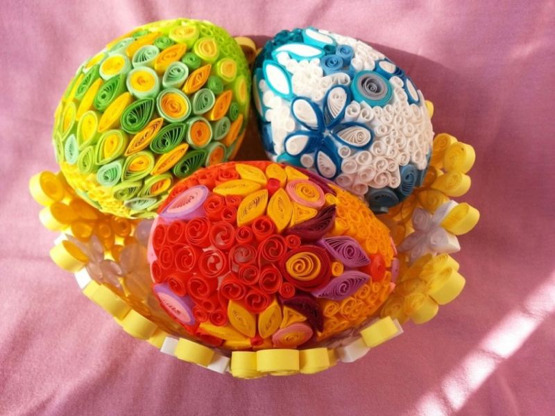А ако направите яйце от папие-маше и го украсите с навита хартия, то ще бъде прекрасна празнична украса за много години напред.