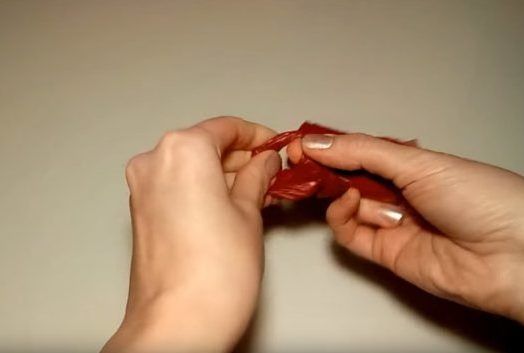 За тази цел изплетете на една кука тесен кръг от прежда. Основното предимство на продукта е, че при необходимост винаги може да бъде измит.