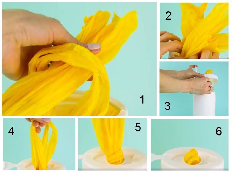 Продължете процеса на сгъване, докато торбичките станат със същата дебелина като държача за салфетки. След това в него се поставя готовата ролка, като не се забравя да се извади накрайникът от централната част.