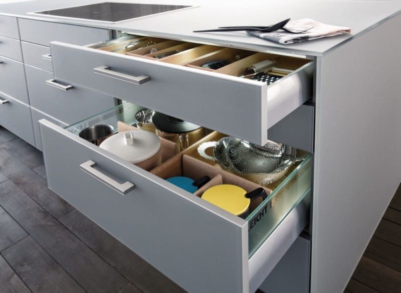 Големите чекмеджета са отлични функционални рафтове за съдове и колекционерски предмети.