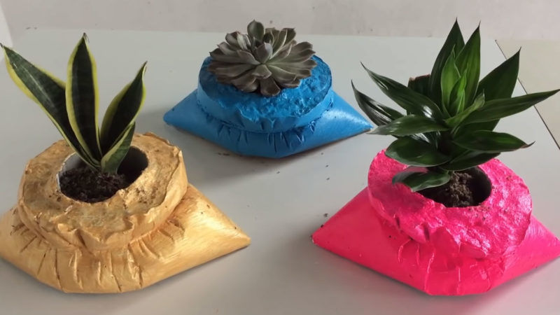 Можете да украсите къщата си с красиви саксии за цветя. В магазините те са скъпи, но можете да проявите креативност и да си ги направите сами. Можете например да поставите саксията в цветна хартиена торбичка. Така ще запазите стила на цветната композиция.