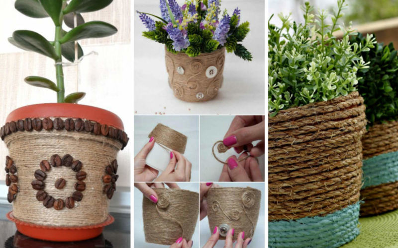 Можете да украсите саксията с копринени въжета и крупиета. Останалите дантели също са полезни.