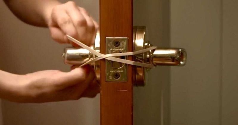 Един прост трик може да помогне за решаването на този ежедневен проблем. Поставете една или повече ластични ленти от външната и вътрешната страна на дръжките, напречно. Точката на пресичане лежи точно върху езика на ключа и здраво го задържа на място.
