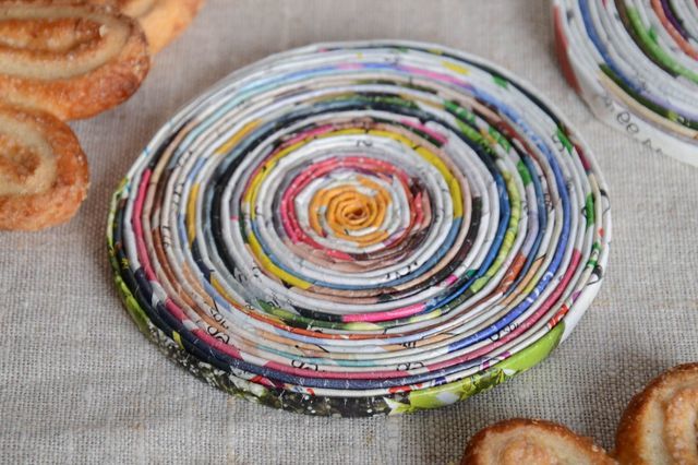 Можете сами да си направите подложка за удобно чаено парти. За работа можете да използвате тънък шперплат, дебела прежда и дори обикновен вестник. Основното е да се направи полезна и осъществима идея, която да носи удоволствие и същевременно да бъде красиво допълнение към кухнята.