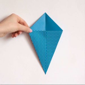 - След това сгънете триъгълника вертикално наполовина, така че долният ъгъл да е вътре.