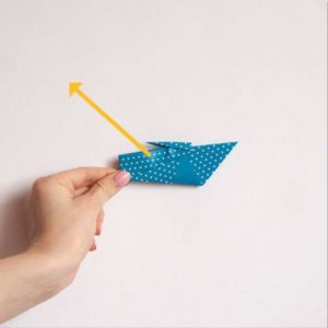 - Разгънете единия край на този триъгълник, така че да се вижда вътрешният ъгъл, който е огънат нагоре.
