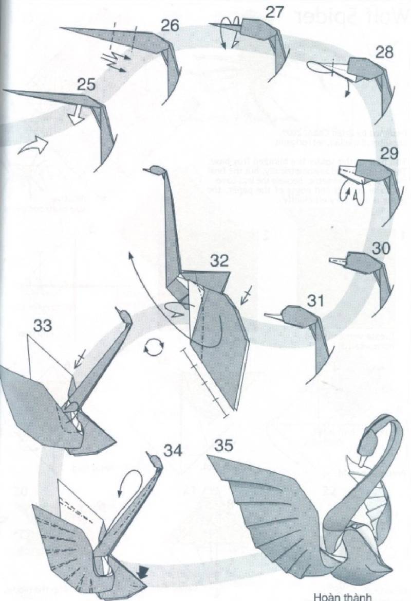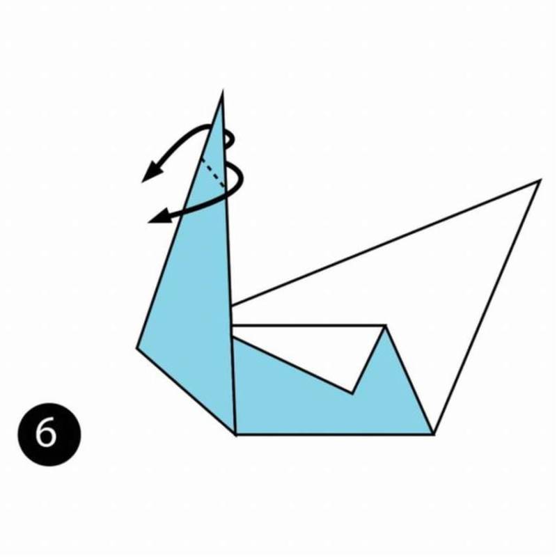 - След това направете шията вдлъбната, както при лебедите. Затова тази част трябва да се огъва диагонално надясно. Трябва да се получи лявата триизмерна част на лебеда, тялото и крилата, а дясната ще бъде врата и главата.