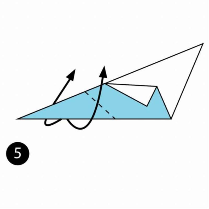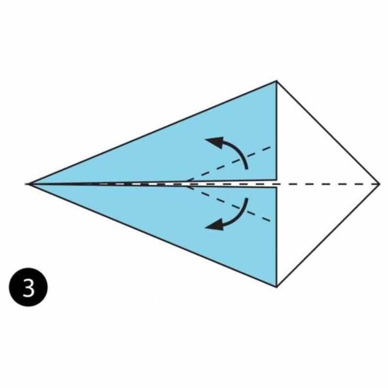 - След това сгънете цялата фигура с изпъкналата страна нагоре, за да получите триъгълник. Трябва да се получи формата на хартиен самолет.