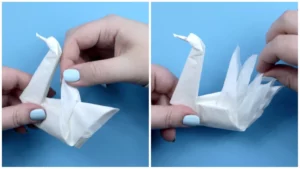 - Сега внимателно изправете крилата на лебеда и им придайте повече обем.
