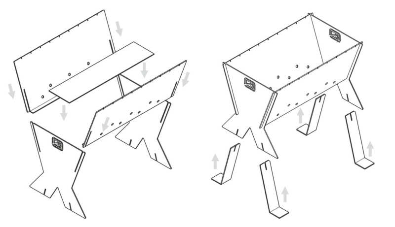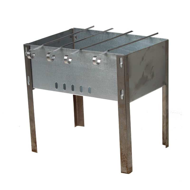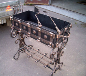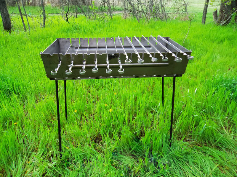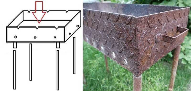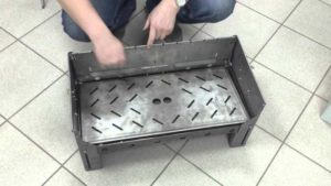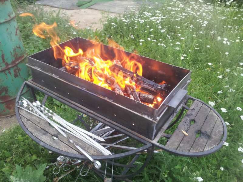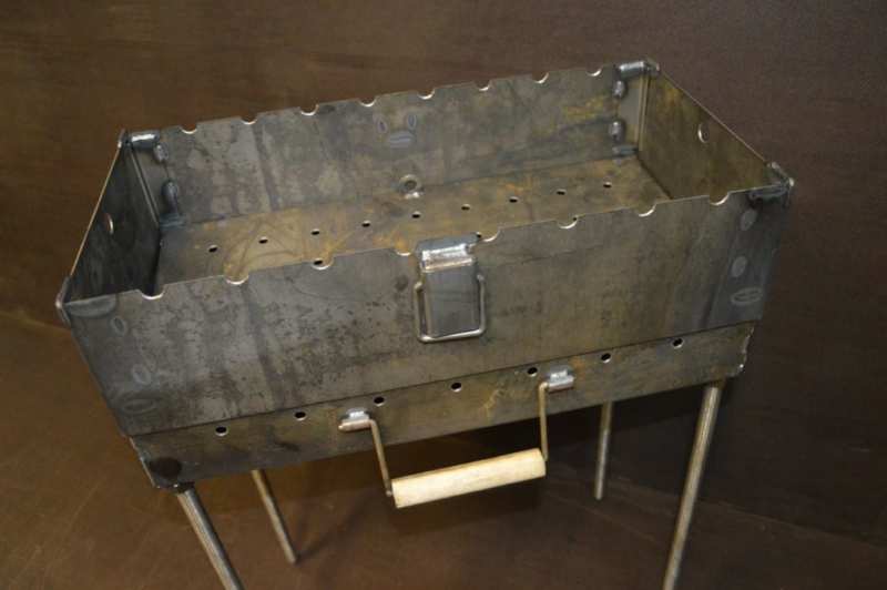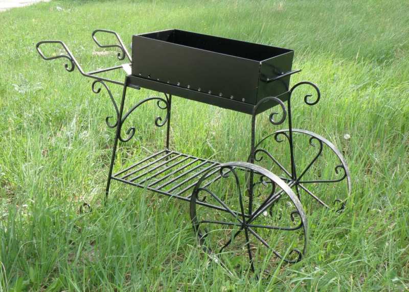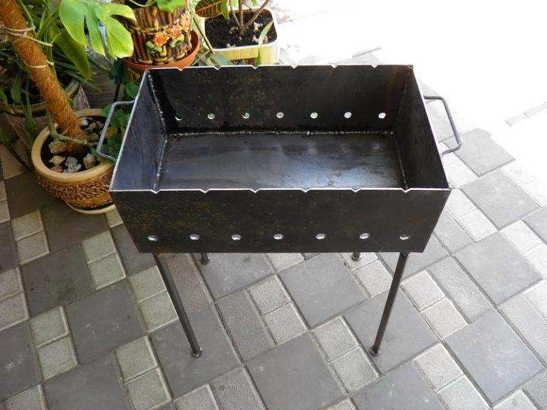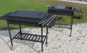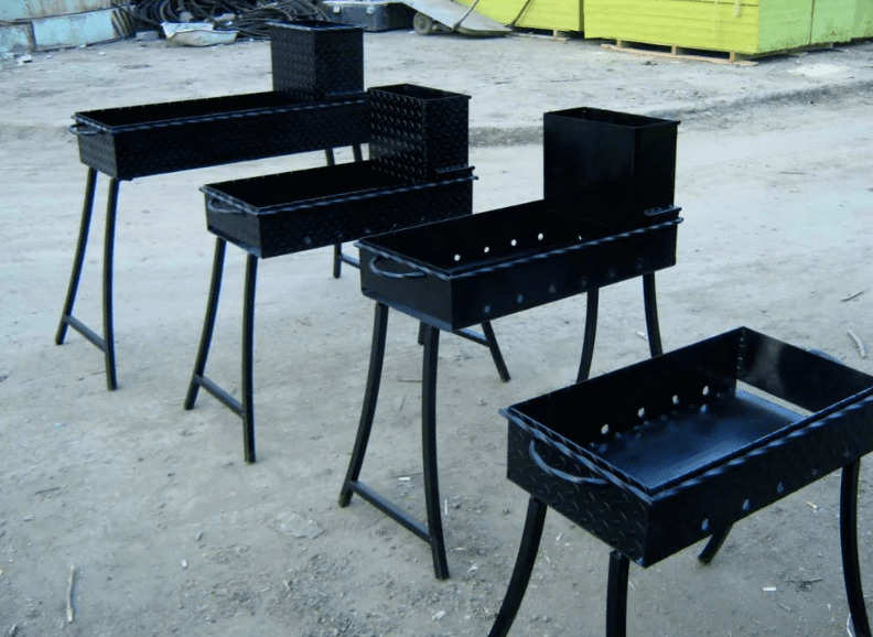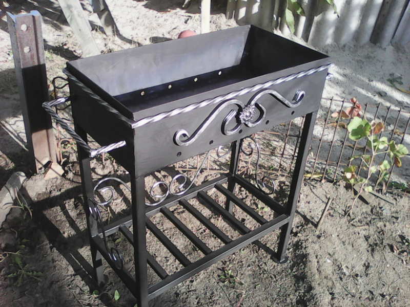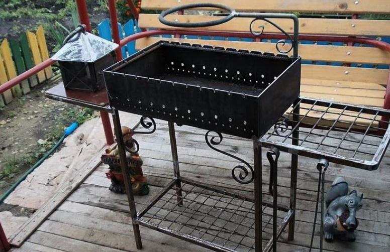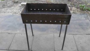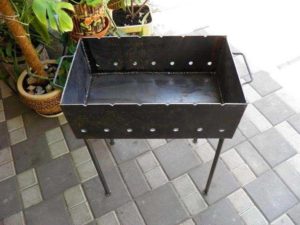 За да си направите такъв мангал, трябва да имате известни умения в заваряването. Необходимите материали са желязна ламарина с дебелина три-четири милиметра, тръба с диаметър 32 или 25 милиметра, метален ъгъл и секционна тръба.