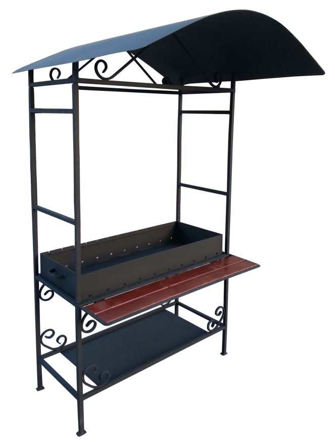 Навесите ще предпазят скарата от валежи, ще осигурят сянка и просто ще подобрят външния вид на конструкцията. Ако прикрепите частите от ковано желязо към горния предпазител, той ще се окаже много красив и привлекателен.