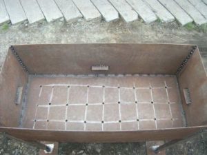 Преди да започнете да създавате, не забравяйте да направите чертеж на бъдещата скара. По този начин ще можете да видите къде трябва да бъде разположена съответната част. Необходими са ви стоманени плочи с дебелина от два до четири милиметра, върху които трябва да отбележите контурите на двете стени, страните и дъното. Необходим ви е и метален ъгъл (25 x 25 мм):