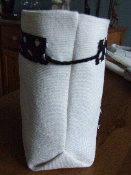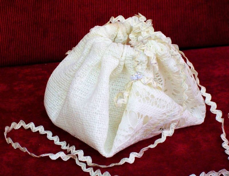 Най-лесният за направа, но не много удобен за използване - просто увийте горната част на продукта с дантела или панделка. Неудобно е, защото процедурата по развързване и увиване трябва да се повтаря всеки път, когато трябва да вземете нещо или да сложите нещо вътре. Освен това дантелата може да се изгуби.