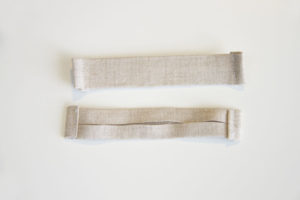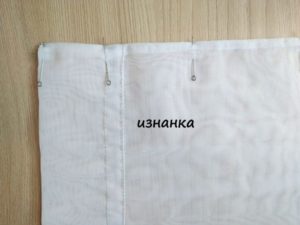 - Огънете и зашийте горната част на парчето, като оставите отвор за връзките.