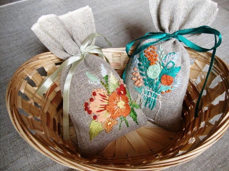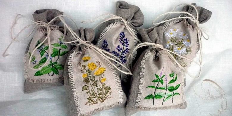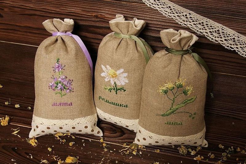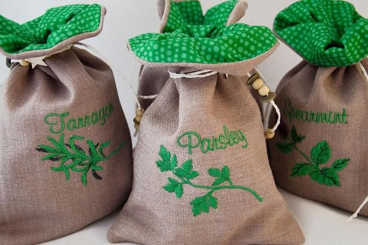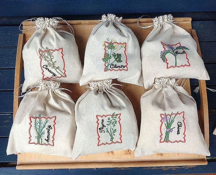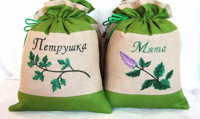 Малката чанта ще ви избави от тежкия и ненужен багаж. И колко красиво е възможно да съхранявате билки и подправки, като бродирате и украсите плата с подходящите елементи. Удобен и красив.