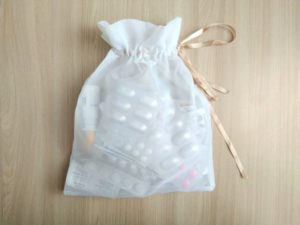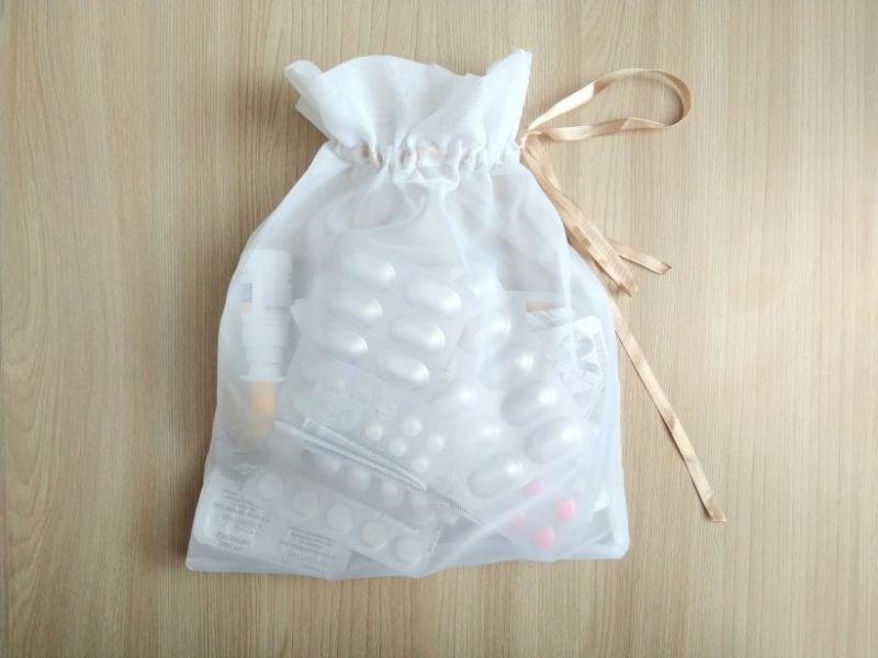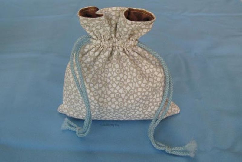 Възможно е да зашиете или завържете връв от двете страни на чантата. Това е малко по-удобно от предишната версия, така че е по-трудно да загубите нишката. Но все пак трябва да разгънете и опаковате продукта.