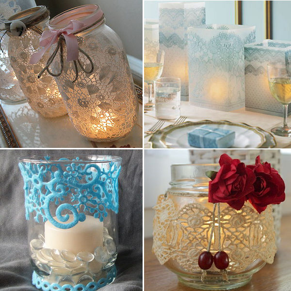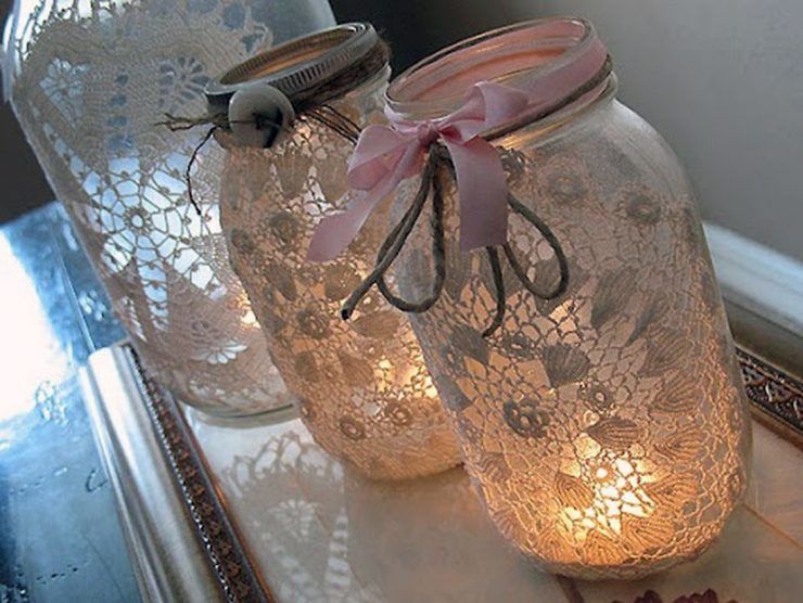 - Стъкленият контейнер трябва да се увие с дантела, така че да няма излишък, но и краищата на плата да не се припокриват.