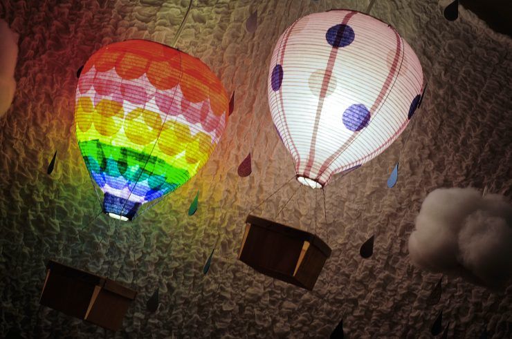 - Абажурът трябва да се постави под тавана. През деня той ще изглежда като обикновен облак, а през нощта - като облак с гръмотевична буря.