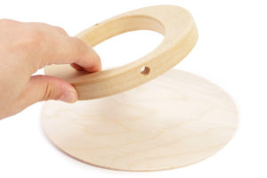 - Изрежете две шайби от дървен прът. Едната от тях ще се превърне в основа на лампата.