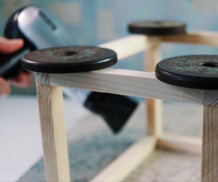 - Пробийте по четири дупки за винтове във всяка от дъските. Направете същото и с акрила.