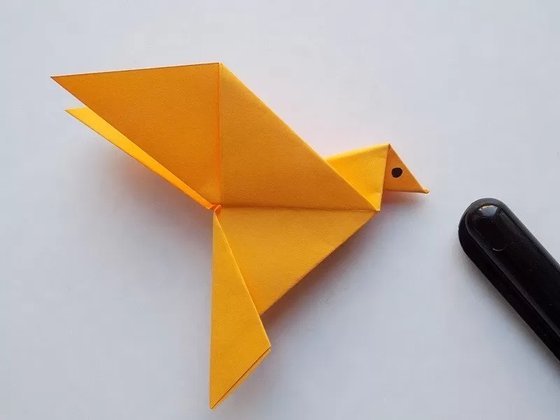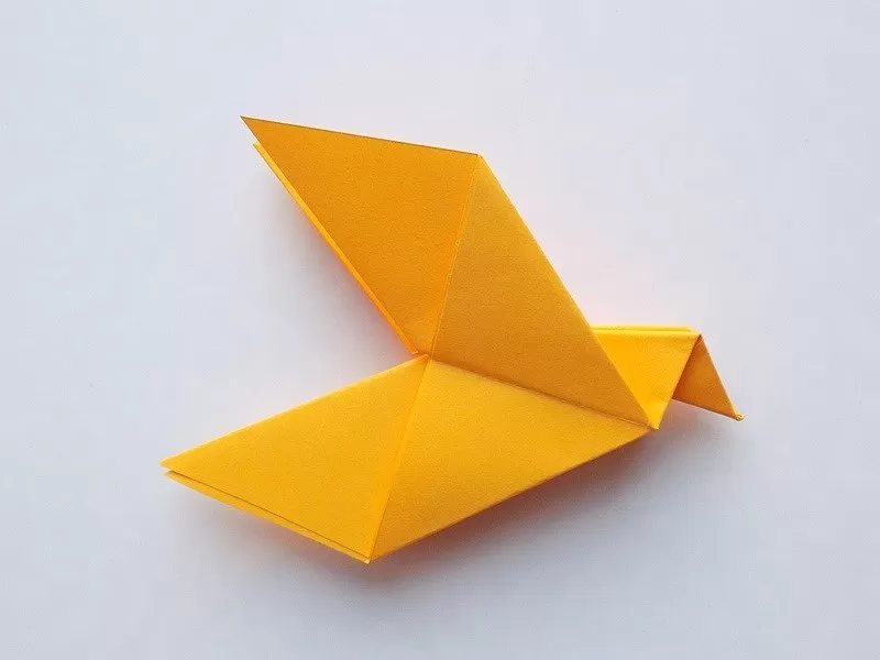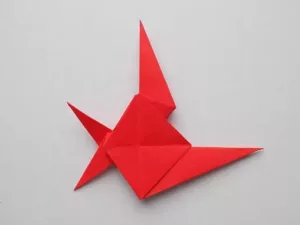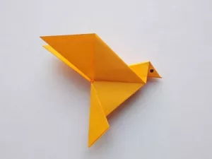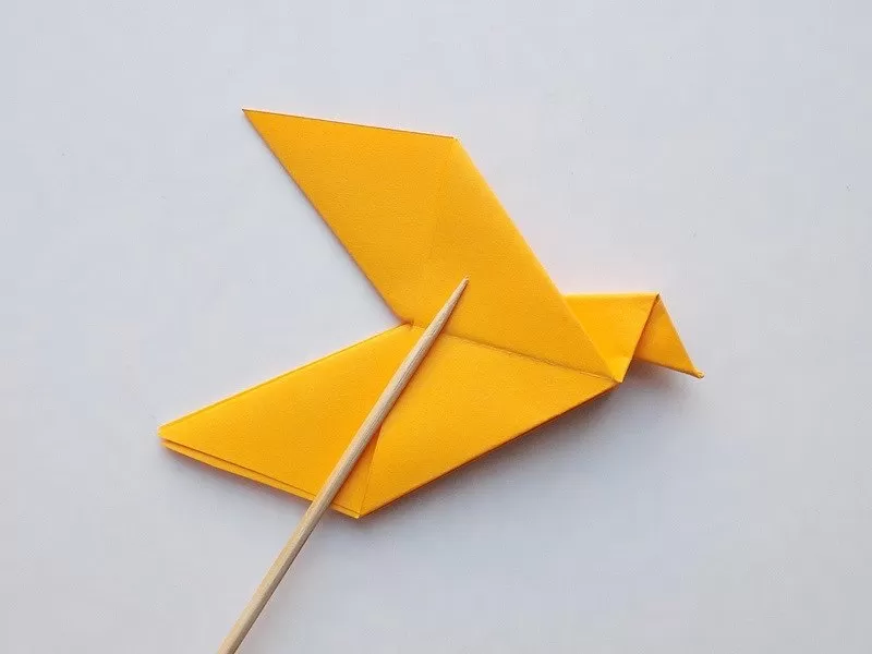 - Необходимо е двете противоположни страни да се огънат, за да се оформят двете крила на птицата.