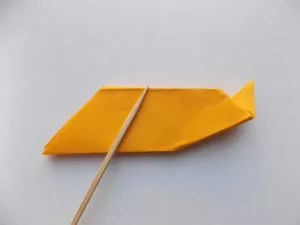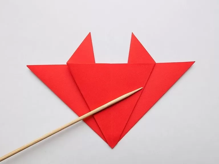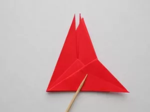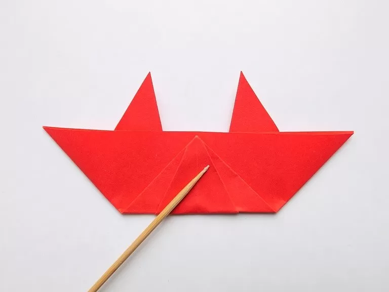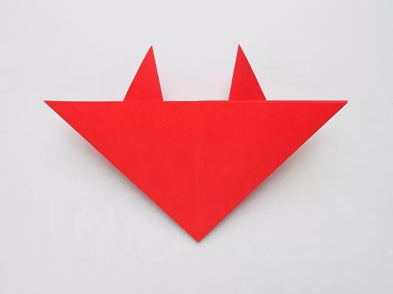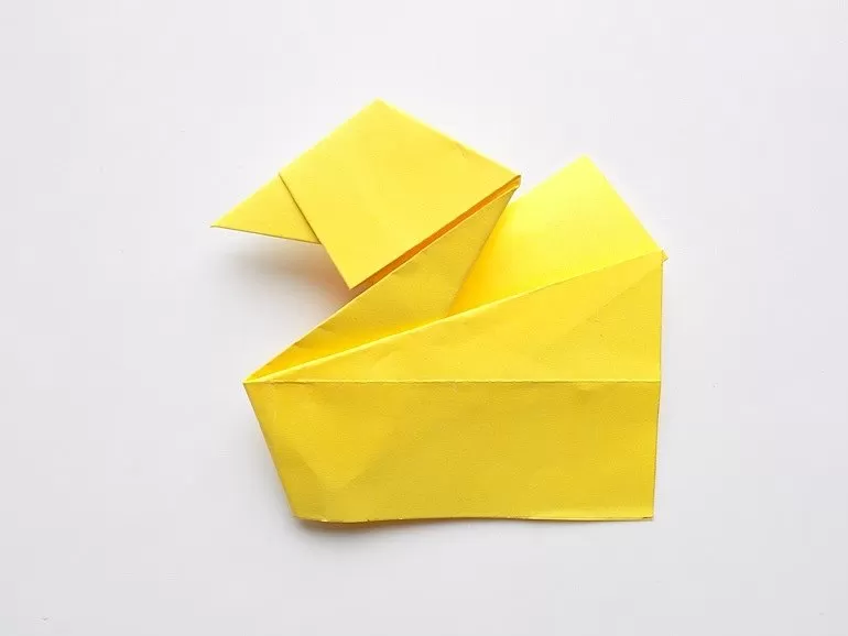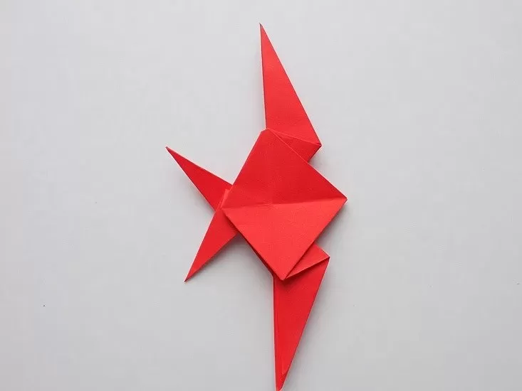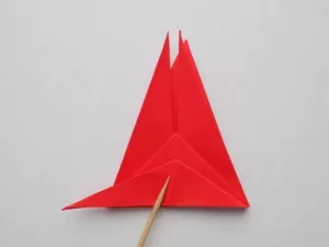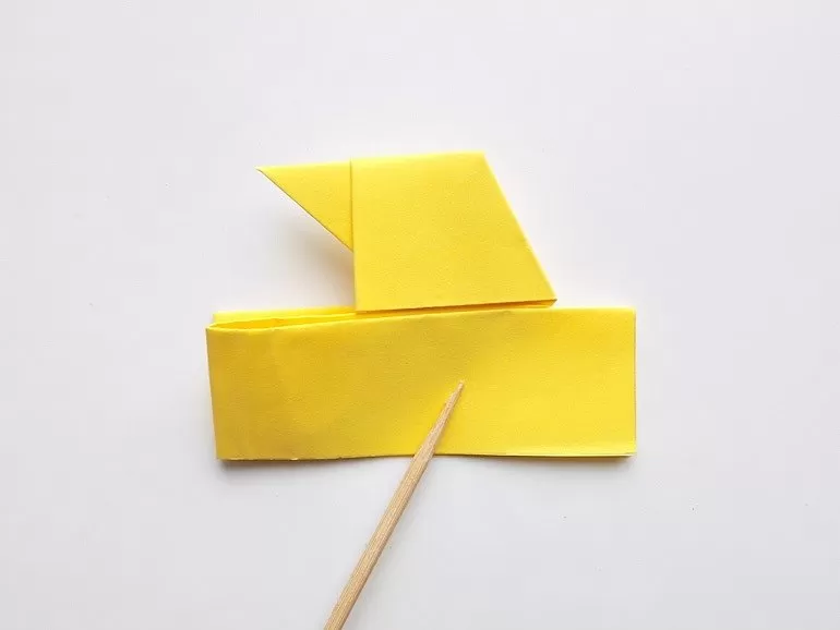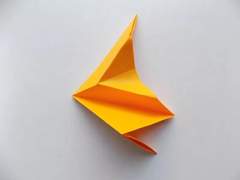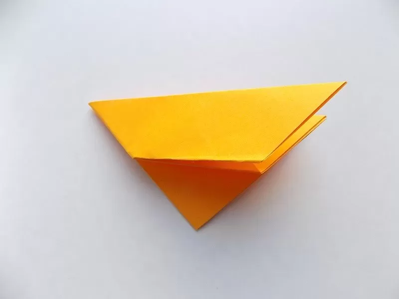 - Огънете горния триъгълник и получете човка.