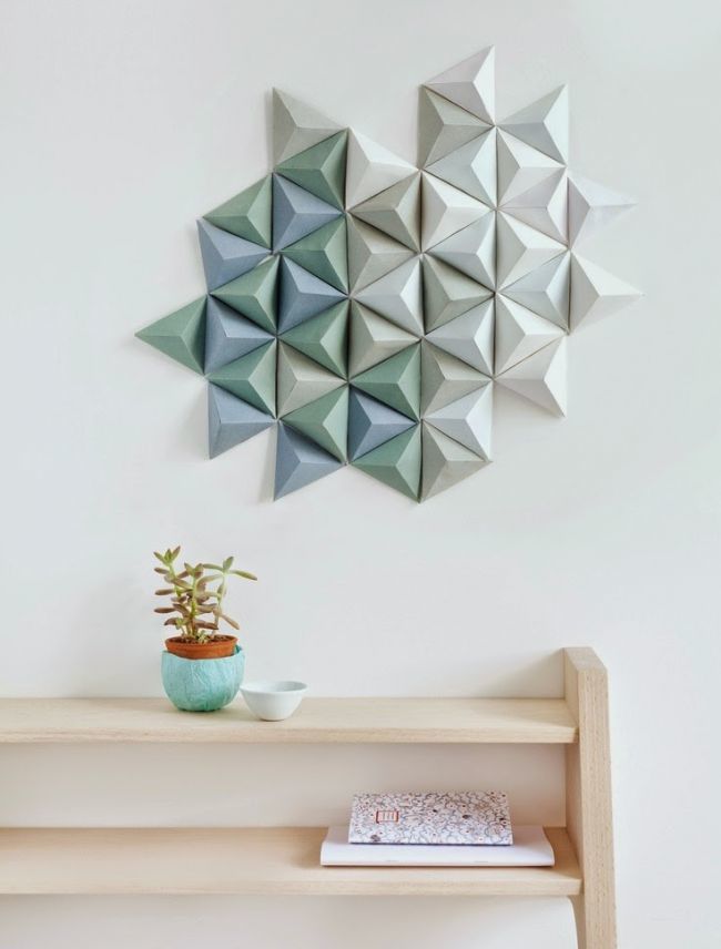 Триъгълните цветни модули се използват за сглобяване на вазата. Може да се използва лепило за закрепване на модулите.