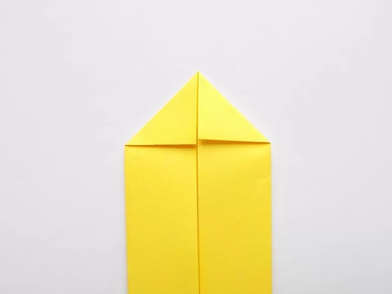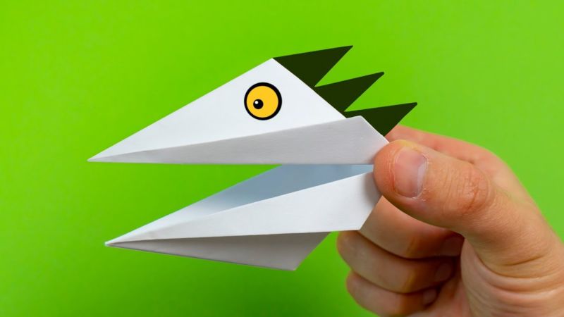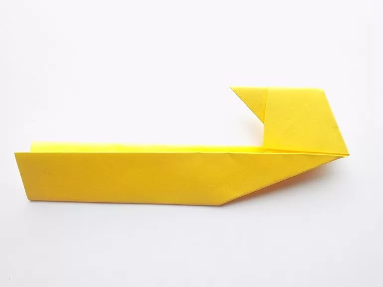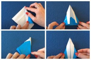 - Сгънете нагоре ъгъла на сгъвката, както при самолета, и сгънете така, че да се образува човка. Привличайте погледа.