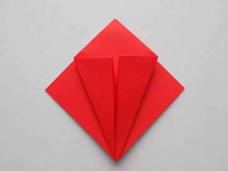 - Разгънете листа и го сгънете в противоположните ъгли от двете страни. Линиите на гънките са вдлъбнати надолу.