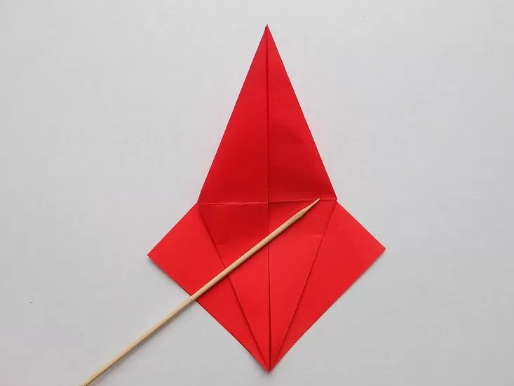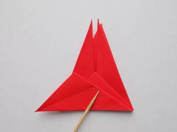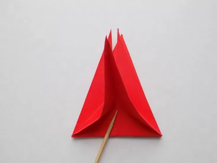 - Поставете единия ъгъл на получения триъгълник на върха и го огънете.