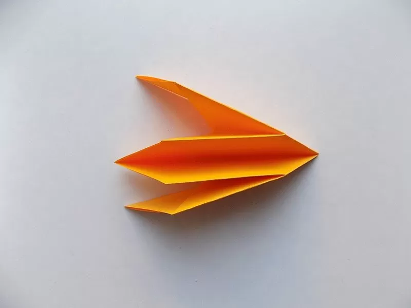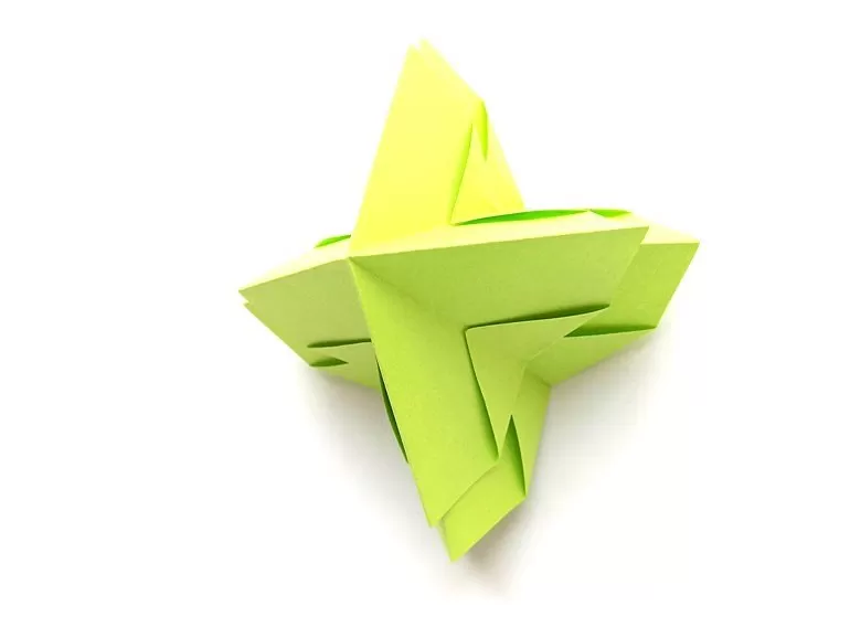 След овладяването на оригами на лесни занаяти може да преминете към сложни дизайни. Те са изработени от части, които се сгъват на триъгълници и след това тези триъгълници се вмъкват един в друг, като придават форма на изделието.