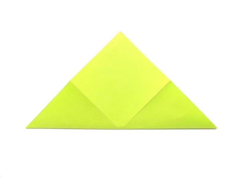 - Сгънете го на двоен триъгълник. Основата трябва да е в горната част.
