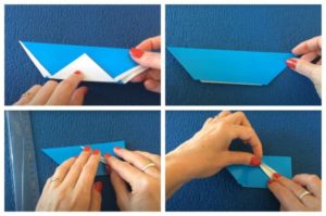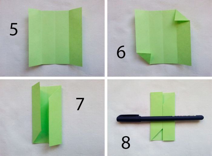 Ръчната изработка е проста и може да се управлява от дете. Задачата на възрастните е да му покажат реда на сгъване на хартията.