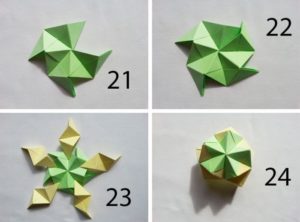 - Сглобете петте модула по този начин и залепете цветето в кръг, като залепите венчелистчетата едно за друго.