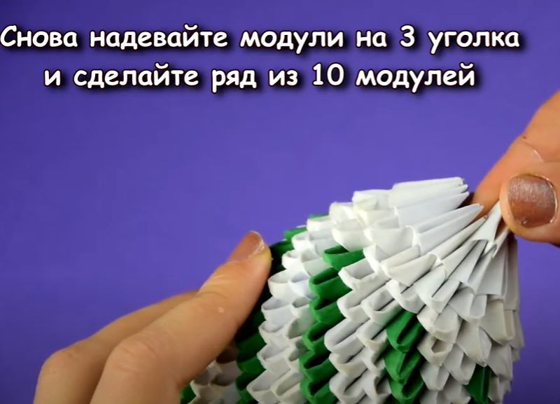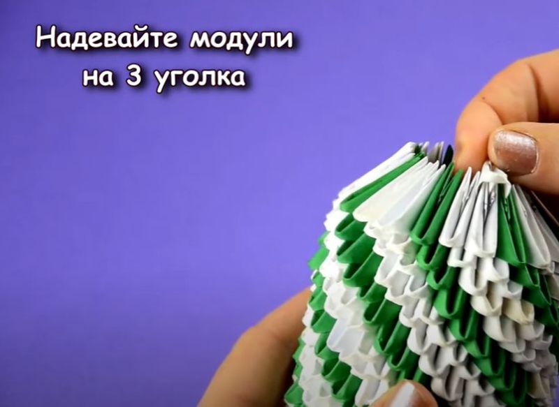 - Направете конус от модулите и съединете сгънатите краища.