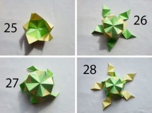 - Простият метод се основава на многократното сгъване на хартия, за да се получи триизмерна фигура.