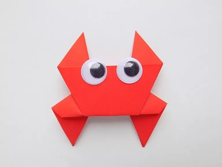 - От горния триъгълник направете краката на рака, като огънете краищата под лек ъгъл от двете страни.