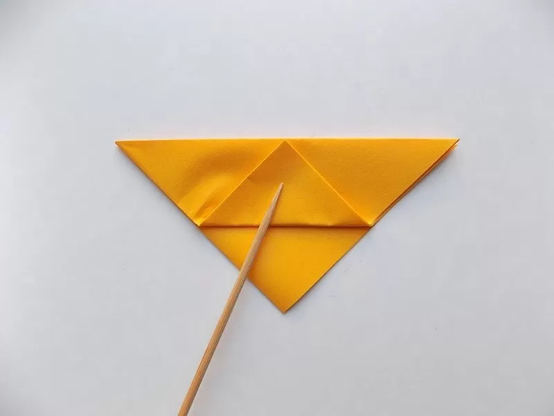 - Обърнете листа и направете вторите крака, като огънете ъгъла на триъгълника и сгънете ъглите под ъгъл.