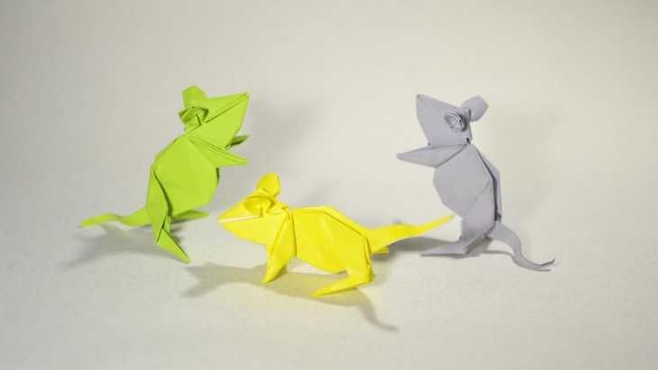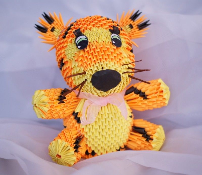 Триъгълните модули в различни цветове могат да се използват за направата на различни животни. Те изглеждат много красиви и необичайни. Но за да ги направите, трябва да имате умения за сглобяване на модулите. Частите на животните се изработват поотделно и след това се сглобяват в едно цяло.