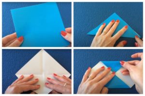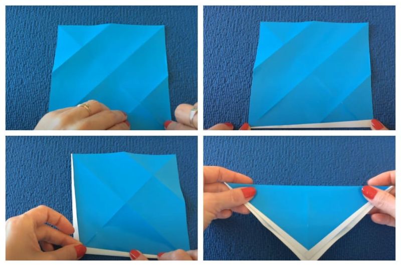 - Сгънете листа по два диагонала и го обърнете.