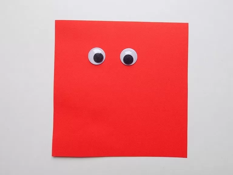 - Обърнете рака и залепете изработените в магазина очи или изрязани от бяла хартия черни зеници в горната част на тялото.