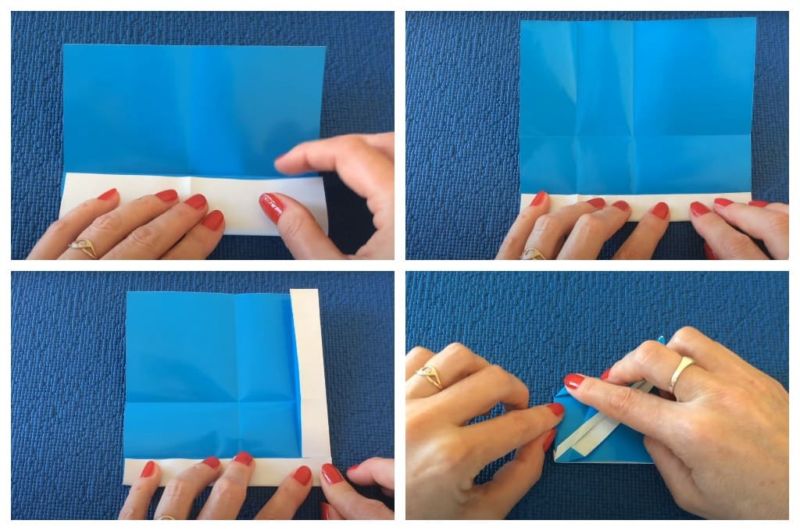 - Разгънете на осем сантиметра и отново сгънете наполовина. Всяка от тях трябва да е по четири сантиметра.