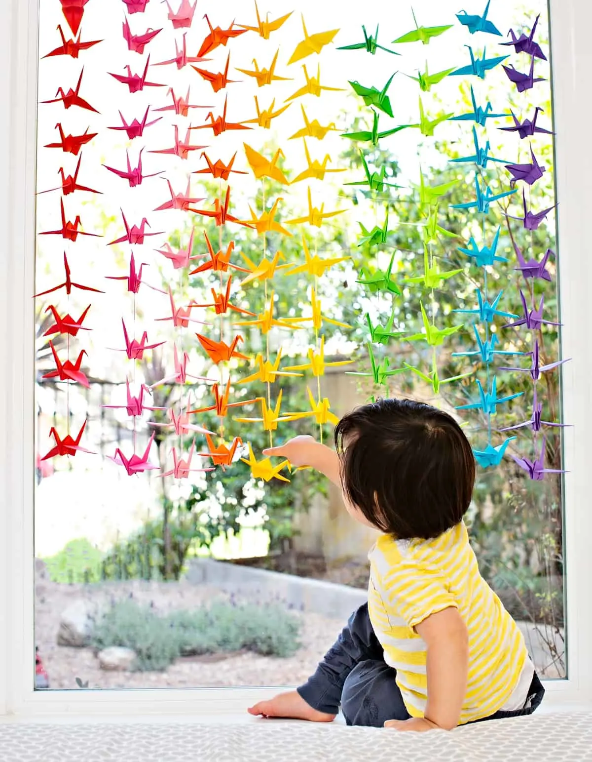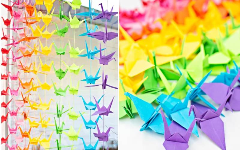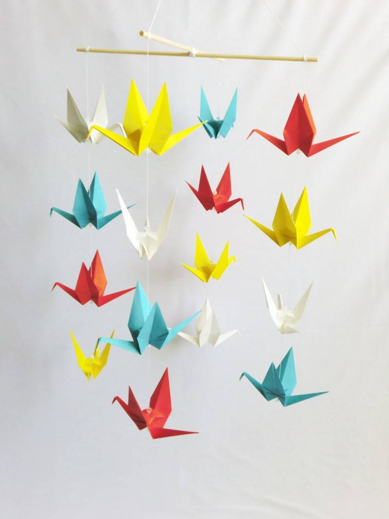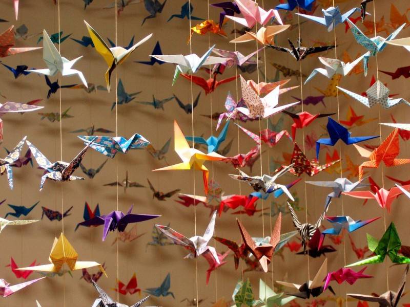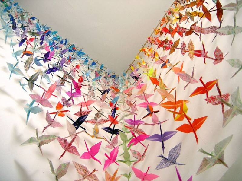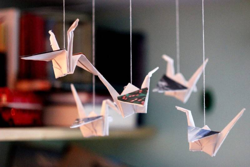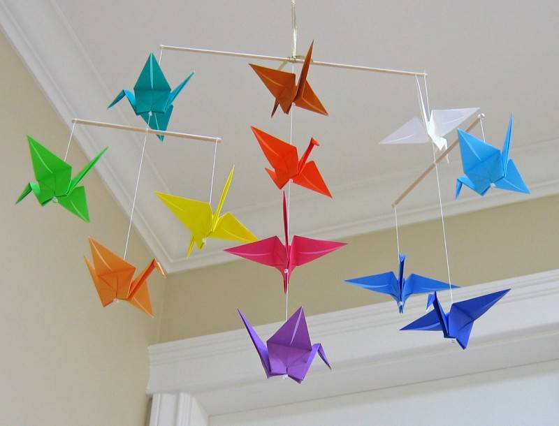 Красивите хартиени жерави могат да се превърнат във възхитителна украса на стаята. Фигурите са оригинални и се вписват идеално в интериора на стаята, като ѝ придават известен колорит.
