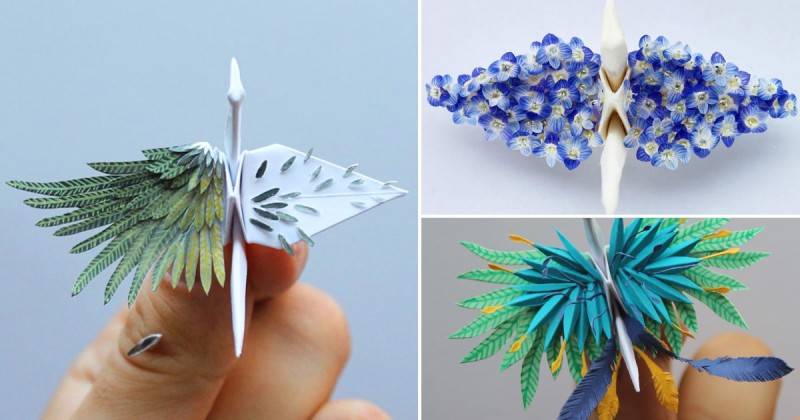 - Това допълва хартиения жерав с очарователна птица, която е лесно да направите сами.