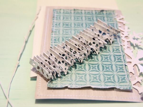 - Изрежете ръба на картона с помощта на ножица за оформяне. Прегънете хоризонтално на две.