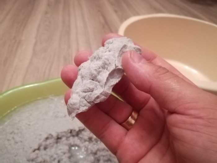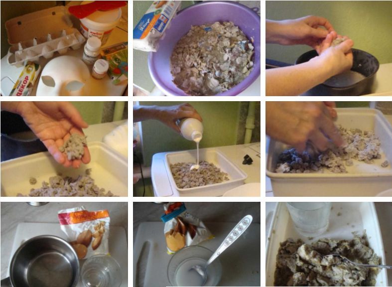 Накиснати във вода и добре изстискани със сито или марля, добавете PVA лепило или паста. Масата трябва да се окаже удобна за моделиране.