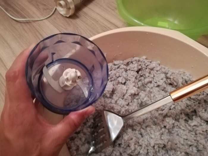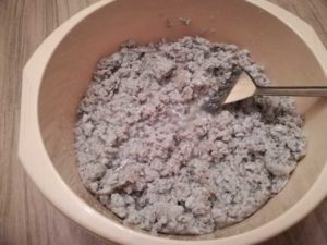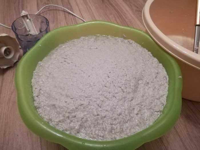 Когато цялата маса се разтвори добре във вода, тя се изстисква добре с марля или кърпа и се добавя към пастата.