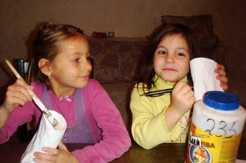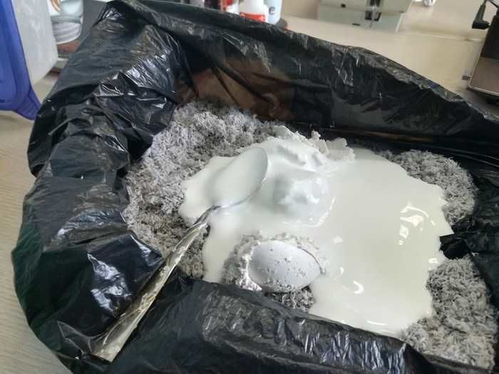 PVA лепилото се разрежда с вода в съотношение 2:1 или се приготвя паста на основата на брашно или нишесте. Работата отнема няколко дни, тъй като заготовката трябва да изсъхне добре.