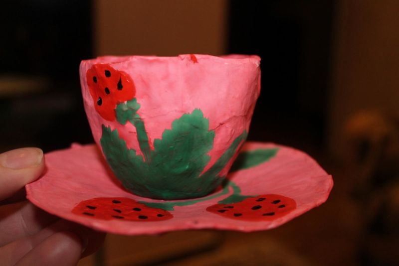 - След като чашата изсъхне, подрежете краищата ѝ с ножица и залепете дръжката. След това чашата може да се боядиса по ваш вкус.