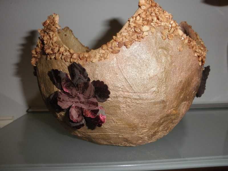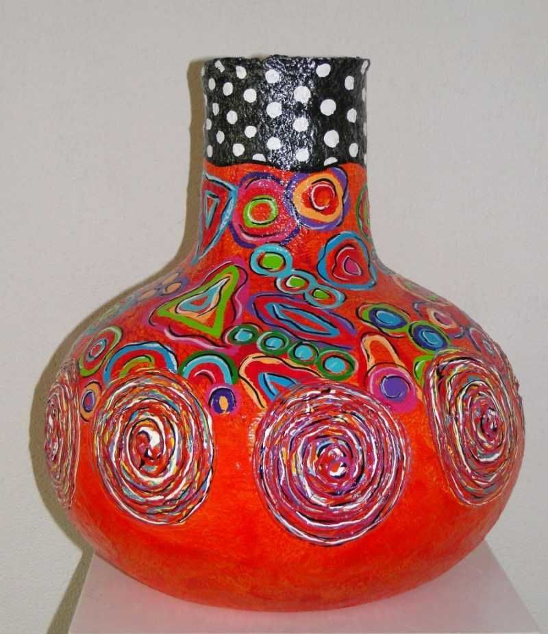 Красивата ваза от папие маше ще украси красиво интериора ви. Можете да направите големи подови вази за декоративни цветя. За подовите вази направете рамка от картон и залепете върху нея парчета вестник.